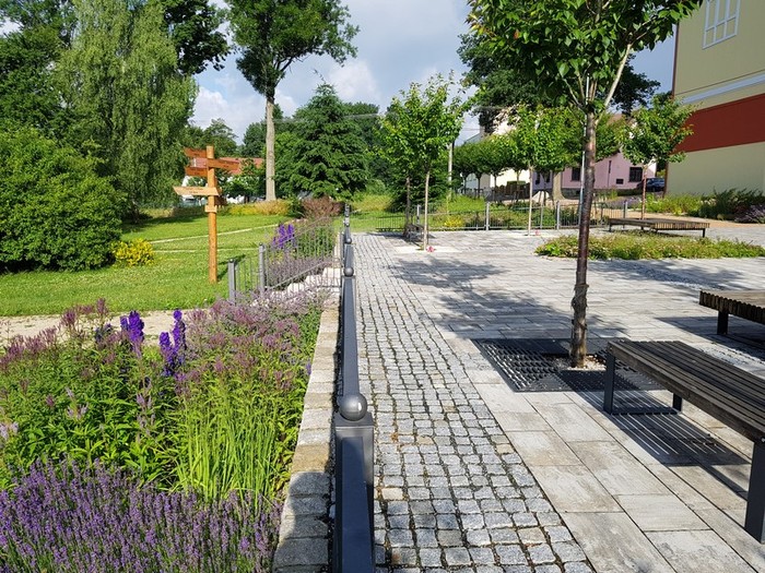 Stavební úpravy zahrnovaly zejména: výstavbu dešťové kanalizace, obnovu krytů kolem budovy ZŠ a v ulici Školní, výstavbu parkovacích stání, opěrné stěny, sadové úpravy.